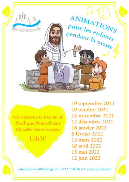 à la Basilique Notre-Dame (chapelle Saint-François), à 11h30, un programme d'activités pour les enfants pendant la messe dominicale.