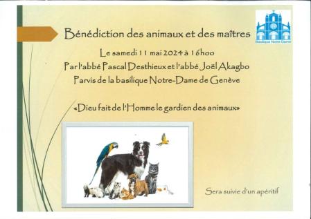 Bénédiction des animaux et de leurs maîtres par les abbés Pascal Desthieux et Joël Akagbo :