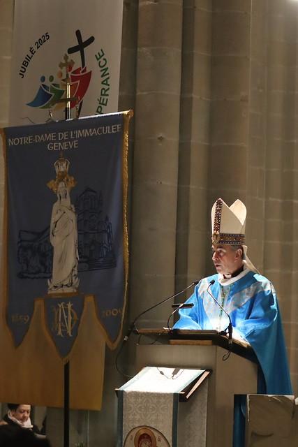 Lundi 8 décembre à 18h30, messe solennelle présidée par Mgr Ettore Balestrero, nonce apostolique auprès des Nations Unies à Genève suivie d'un apéritif festif dans nos salles paroissiales.