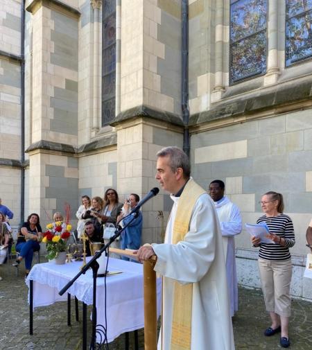 L'abbé Pascal Desthieux, curé modérateur et recteur de la basilique lors du moment de la prière commune